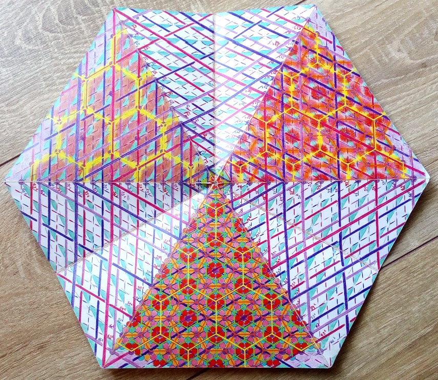 BenoitM: Und die Mitte des Kegels ist trotzdem leer. Rein geometrisch ist das klar. Im gleichseitigen Dreieck kann ein Kreis um eine Spitze mit Radius halbe Seitenlänge die Mitte des Dreiecks nicht erreichen. Wieso bleiben beim Einfalten die genauen Längenverhältnisse der Schneeflocke erhalten, wie bei einem festen Gitter mit Scharnieren zum Einklappen? Eigenartig, geht es hier nicht um bewegliche Strömungen?